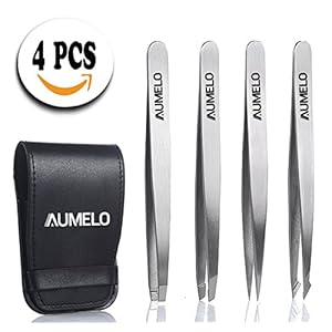 Tweezers Set 4-Piece Professional Stainless Steel Tweezers with Travel Case by Aumelo – Best Precision Eyebrow and…