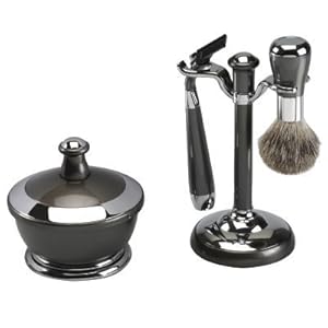 Gun Metal Finish Shaving Set With Mirror Shaving Bowl