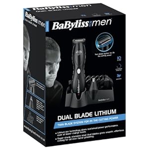 The BaByliss For Men Dual Blade Lithium trimmer is a professional grade rechargeable trimmer with a twin blade system for twice the cutting power. The lithium-ion technology gives sustained power performance, even at lower charge levels. Super sharp, stainless steel dual blades give smooth, effortless cutting for all over facial grooming.