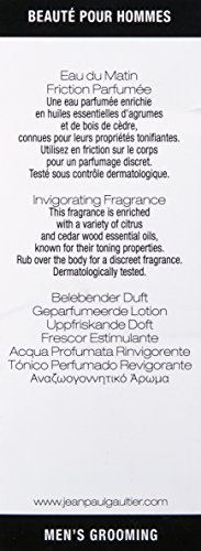Monsieur Eau du Matin by Jean Paul Gaultier is a woody aromatic fragrance for men and was launched in 2008. The nose behind this fragrance is Francis Kurkdjian. Top notes are citruses and bergamot; middle notes are spices and petit grain and base notes are guaiac wood and cedar.