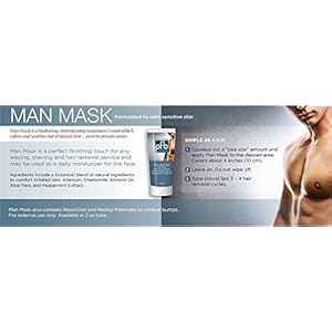 Man Mask is an alcohol-free, hydrating, moisturising, leave -on treatment cream which calms and soothes hot irritated skin even in private areas. Man Mask is perfect to use on the face and private areas after any waxing, shaving or hair removal service to prevent ingrown hair and razor burn. Man Mask also combats blemishes and redness.