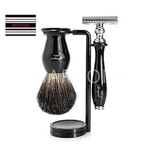 Contents: 1 x De safety Shaving Razor 1 x Badger Shaving Brush 1 x shaving Mug 1 x shaving soap 1 x Brush and razor Holder/Stand