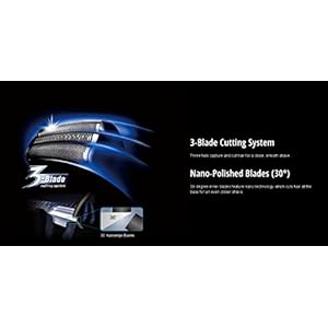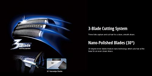 Three blade ultra-thin foil cutting system with 30 degrees nano blades for a clean shaving experience