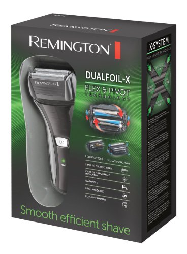 The Remington F4800 Dual Track-X shaver is great for getting to those hard-to-reach areas. Incorporating advanced Flex and Pivot technology, the multi-directional pivoting neck freely adjusts to an optimum angle to reach the contours of your face and jawline areas. The pop-up trimmer will deliver a fast, close, smooth shave with no irritation with the help of the anti-slip grip and the close cut, dual foils. There is 30 minutes of cordless usage, wet or dry, perfect for staying looking good on the go. The shaver is long life and has universal voltage for your convenience. The charging indicator light will let you know when you are running low on battery. Enjoy an effortless, ultra comfortable shave, time after time. Batteries are included.