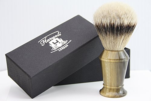 Silver tip Badger Made from natural Badger hair, The brushes are incredible soft, fine, and flexible, making it smooth and gentle on your skin. With the ability to hold a large amount of water, lathering up is quick and easy. Handmade in UK Shaving Brushes are entirely hand sculpted and fashioned by Haryali London in UK. We are taking our time to make sure every brush is made to perfection, Haryali London is able to produce some of the most striking and spectacular pieces around.