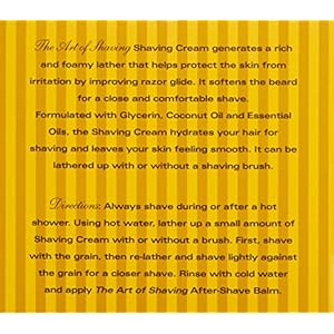 The Art of Shaving Shaving Cream softens and lifts the beard fora close and comfortable shave, and protects the skin fromirritation and razor burn.