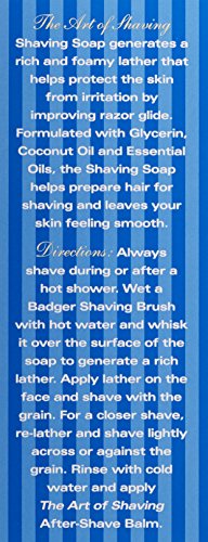 Aromatherapy-based, scented with 100% pure essential oils Helps soften & lift beard for a close & comfortable shave Protects skin from irritation, razor burn or cut Blended with beneficial ingredients like glycerin, coconut oil Makes skin smooth & moisturized Lathers up with a shaving brush or with fingers Rinse off & apply after shave balm or gel