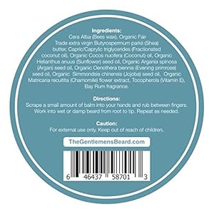 The Gentleman’s Beard Premium Bay Rum Beard Balm is made in the USA with all natural ingredients. It does not contain any chemicals or additives, and it hasn’t been tested on animals. The masculine Bay Rum fragrance comes from natural plant extracts.