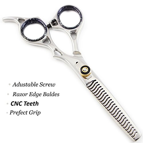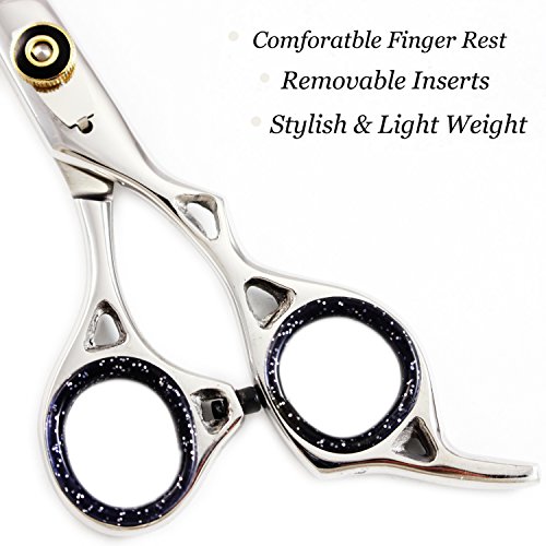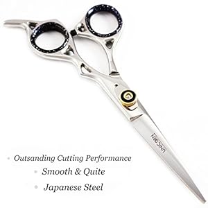 ★ COMFORTABLE ERGONOMIC : the tension is easy to be adjusted by the knob. easily complete the Cutting of any hair style, saving you precious time. Regular & Thinning scissors can be used with e right hand.