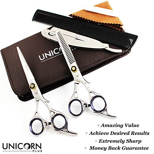 ★NEW YEAR GIFT SET : Get Free Razor with Premium quality Right Handed Hairdressing scissors. Comes with 6.5-inch cutting scissors, thinning shear, barber hair shaver and Styling Scissors Accessories by Ubnicorn Plus Scissors