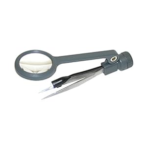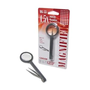 Carson MG-55 MagniGrip 4.5x Magnifier with Attached Fine Point Tweezers, Grey