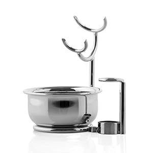 Mondial Italian Crafted Premium Chrome Plated Razor & Brush Shaving Stand with Lathering Bowl