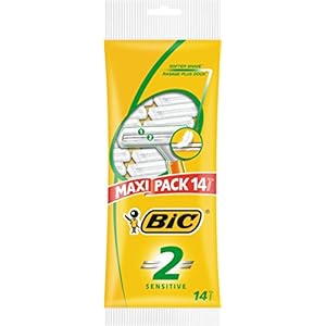 BIC 2 Sensitive Men’s Razors, Disposable Razors with Two Blades for a Close and Precise Shave, Pack of 14