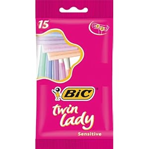 BIC Twin Lady Sensitive Razors, Disposable Razors with Two Blades for a Smooth and Precise Shave, Pack of 15