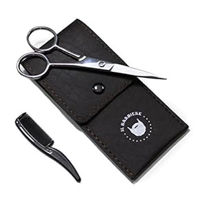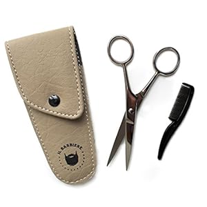 Professional Beard and Moustache Scissors (4.5 inch) for Men with Synthetic Leather Case and Mini Plastic Comb