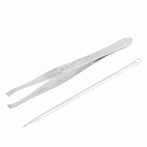 Move&Moving(TM) 2 Pcs Silver Tone Stainless Steel Blackhead Remover Eyebrow Tweezer Tool Set by Move&Moving(TM)